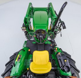 Operator comfort is important regardless of the application. Improving the 5E 3-Cylinder Tractor models, the hand throttle has been relocated to the right-hand console. This is 30.5 cm (12-in.) closer to the operator and within easy reach versus the previous location on the center-hand console. Operators may also notice the additional legroom provided by the repositioned loader controls, providing a more enjoyable experience. | |||||||||||||||||||||||||||||||||||||||||||||||||||||||||||